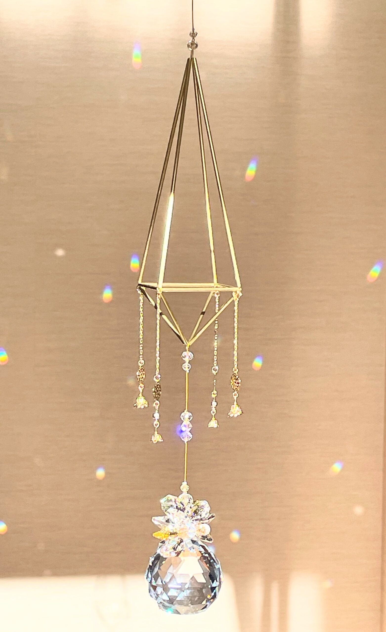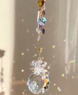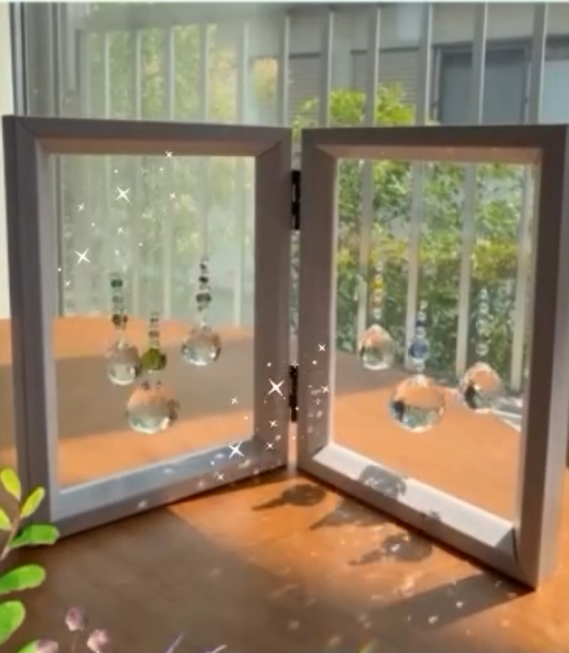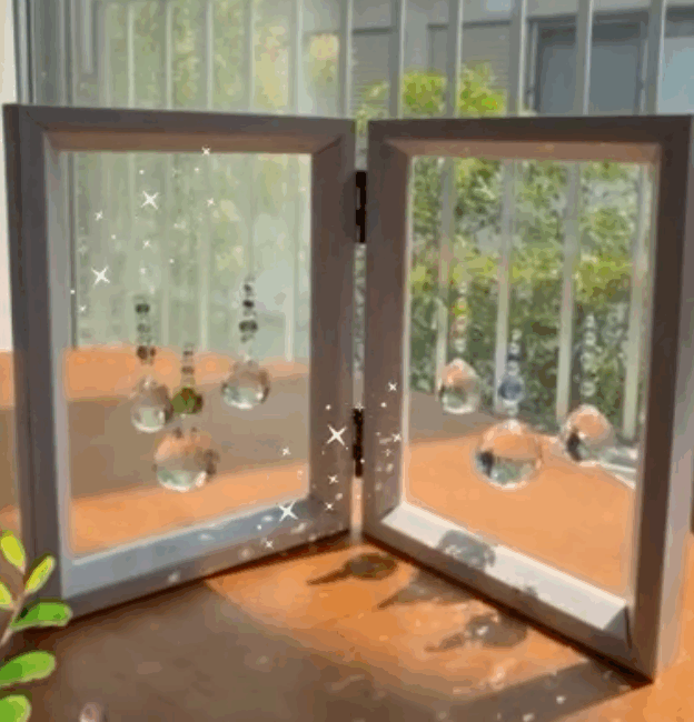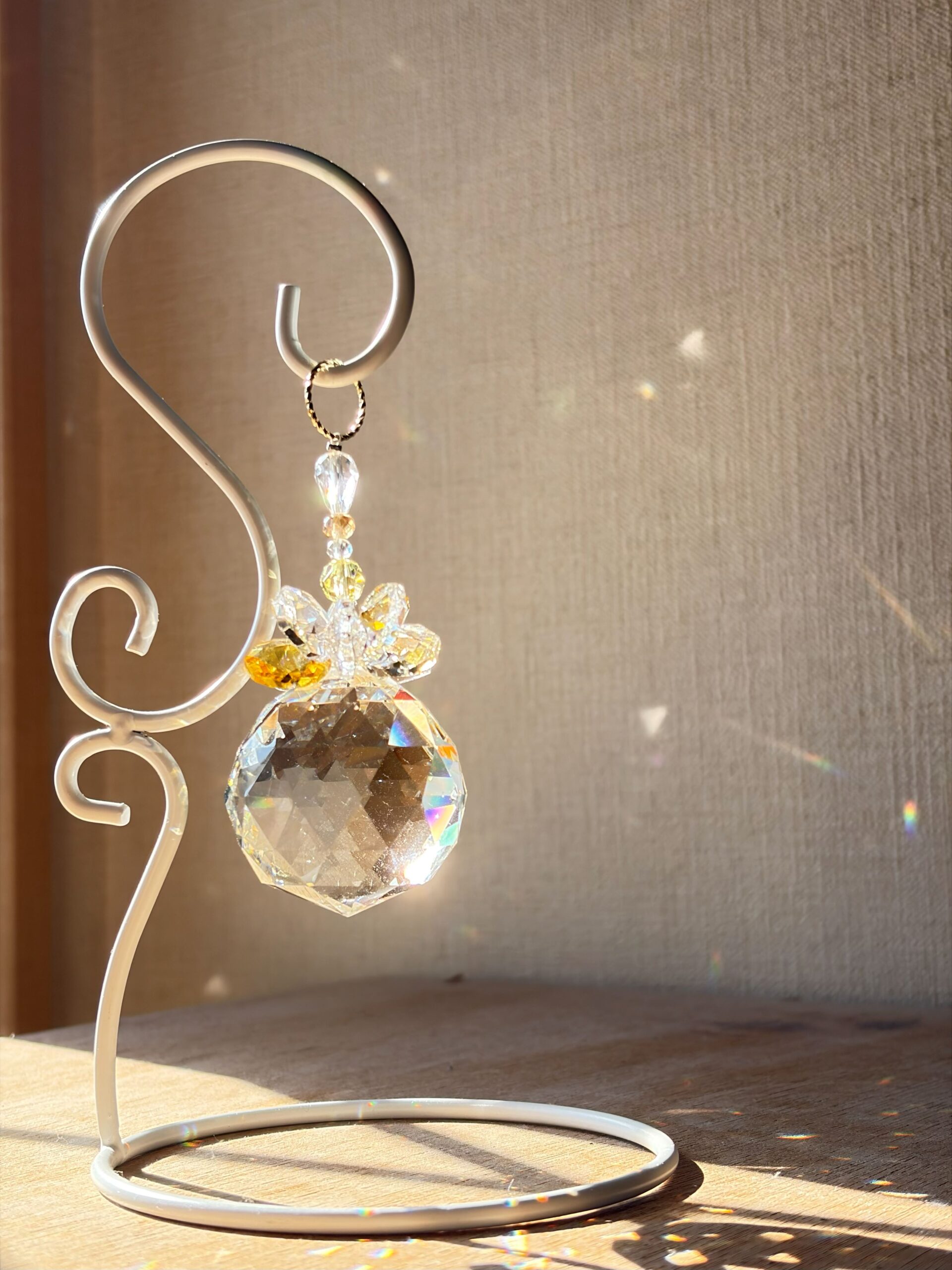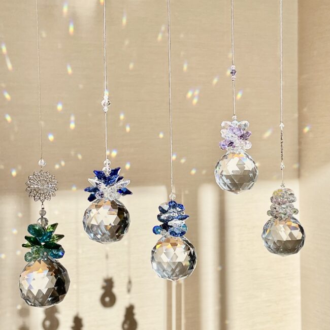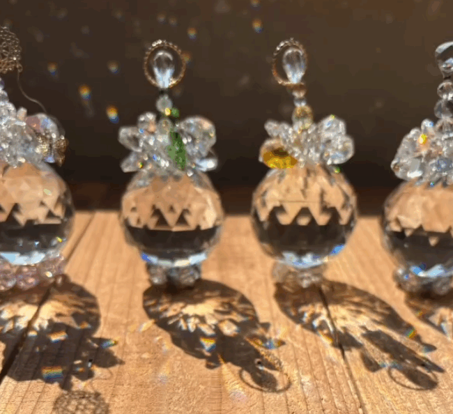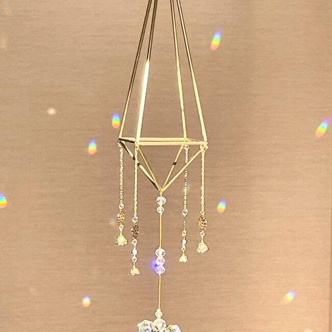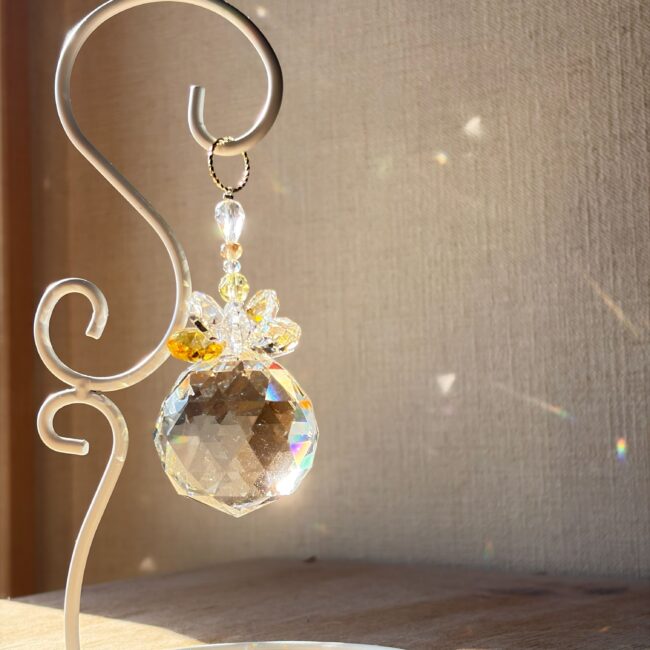 太陽の光を受けて、部屋いっぱいに虹の粒を散りばめるその輝きは、まるで心の中に静かに差し込む希望の光のよう。光を通して、あなたの心にもやさしい波が広がりますように。